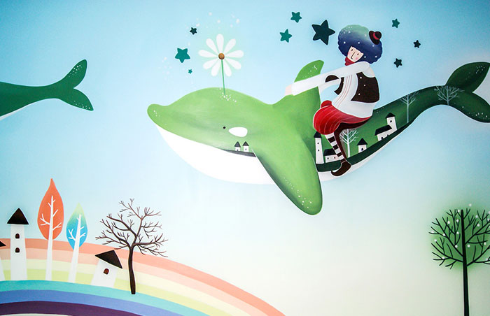 咖啡馆彩绘墙——自带饭勺的小鸟